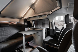 Der neue CROSSCAMP Life basiert auf dem OpelZafira Life – und ist ab Frühjahr 2020 verfügbar. Er bietet eine reichhaltige Serien- und Sonderausstattung, zudem gibt es auch attraktive Ausstattungspakete. Zusätzlich zu den bekannten Motoren kann der CROSSCAMP Life mit einem 2,0 Liter-Aggregat (90 kW/122 PS) und Acht-Stufen-Wandlerautomatik geordert werden. Die Möbelfronten des CROSSCAMP Life sind in einer stylishen, monochromen und besonders robusten Stein-Optik gehalten. Außerdem neu: Das optionale „Schlechtwege Paket“ mit um 25 mm höher gelegtem Fahrwerk, einem Reserverad aus Stahl sowie einem robusten Unterfahrschutz. Wahlweise steht zudem das adaptive Traktionssystem „IntelliGrip“ mit fünf Fahrmodi und Winterreifen zur Verfügung.